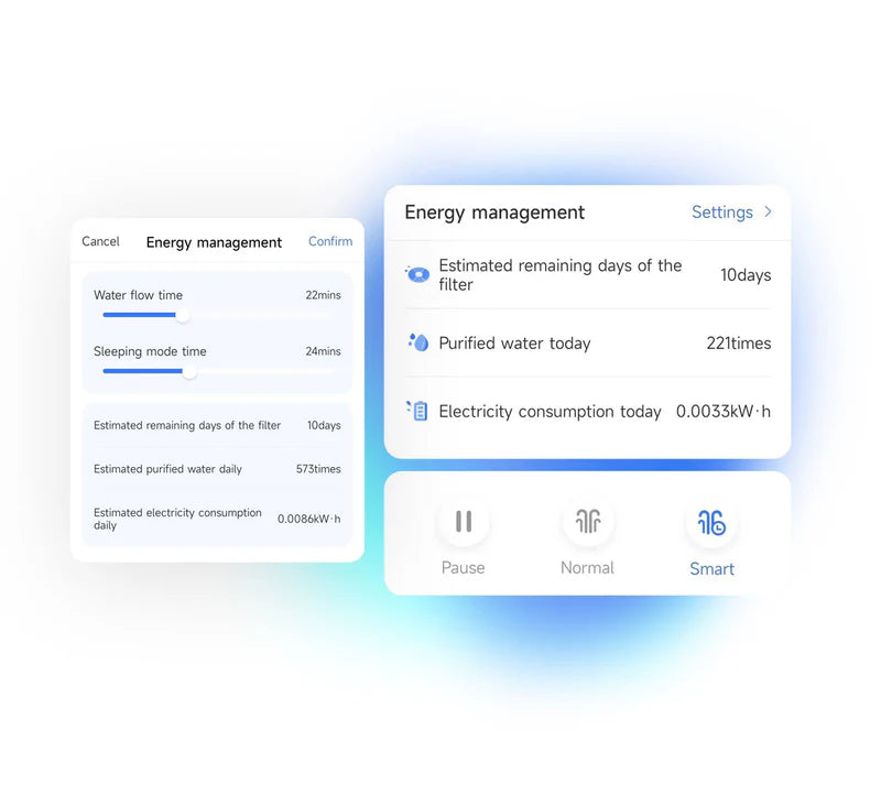 The PETKIT APP makes it simple to keep track of the filter's status and the water level. Switch between SMART MODE to save energy and NORMAL MODE to ensure fresh water 24/7, depending on your demands.