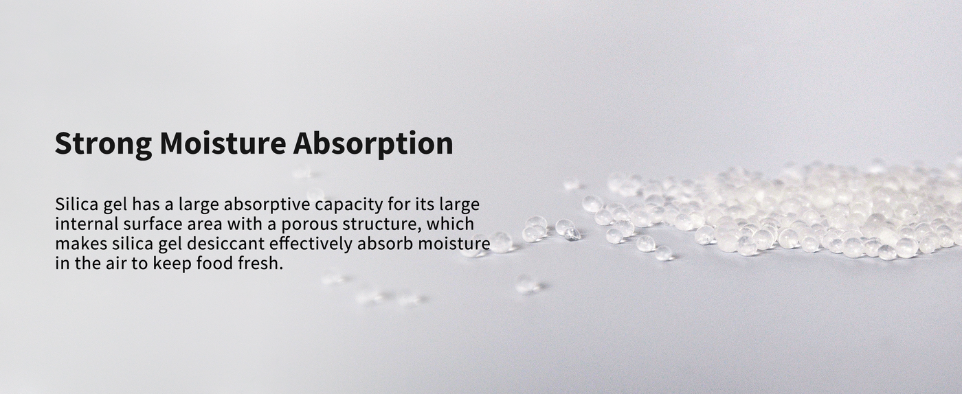 Odorless, high moisture absorption, used for moisture-proof and fresh-keeping of pet food or other items that need to be protected from moisture .