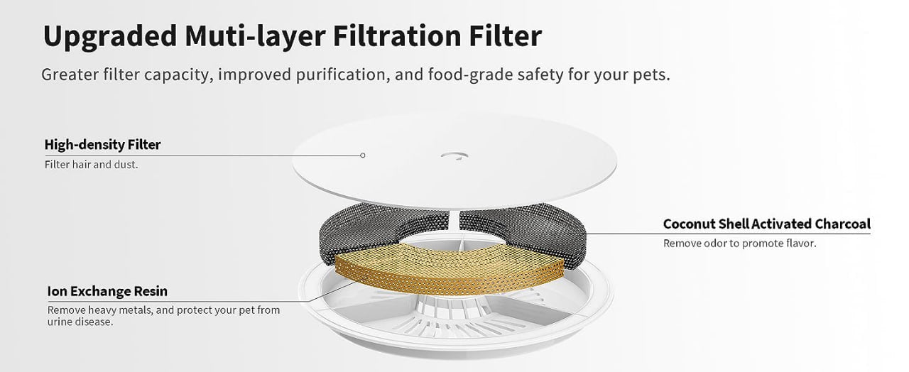 🎯 FILTER 3.0: This PETKIT cat water fountain for indoor cats comes with a piece of PETKIT filter 3.0, which increases the amount of filtration material and has better filtration, providing fresh water for your pet at any time.