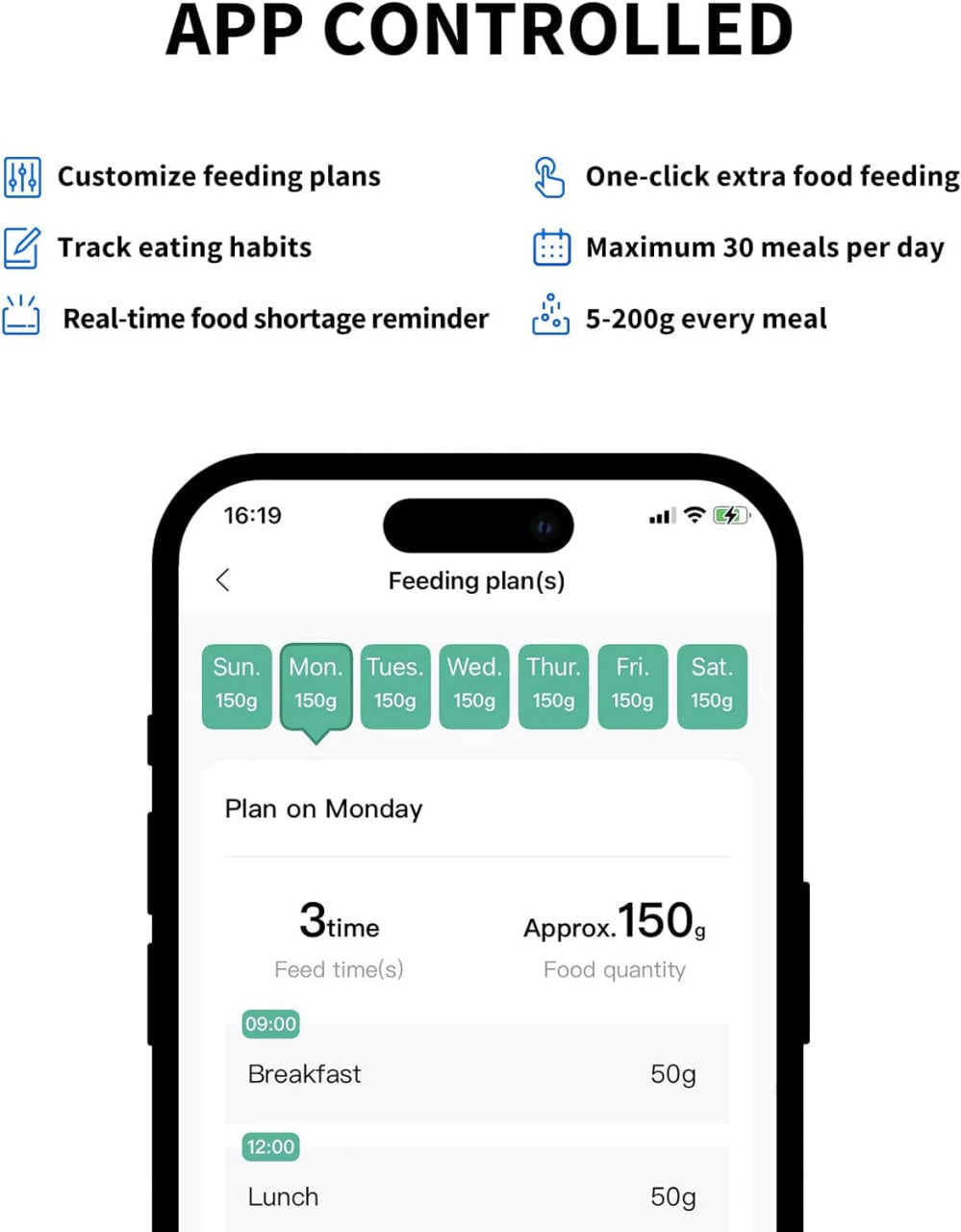 APP control - customize feeding plan, monitor food intake and alert notifications
