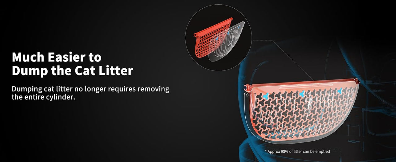 🎯 DUMP CAT LITTER EFFECTIVELY: No longer requires removing the entire cylinder to dump the cat litter, just one click to empty approximately 90% of the cat litter.