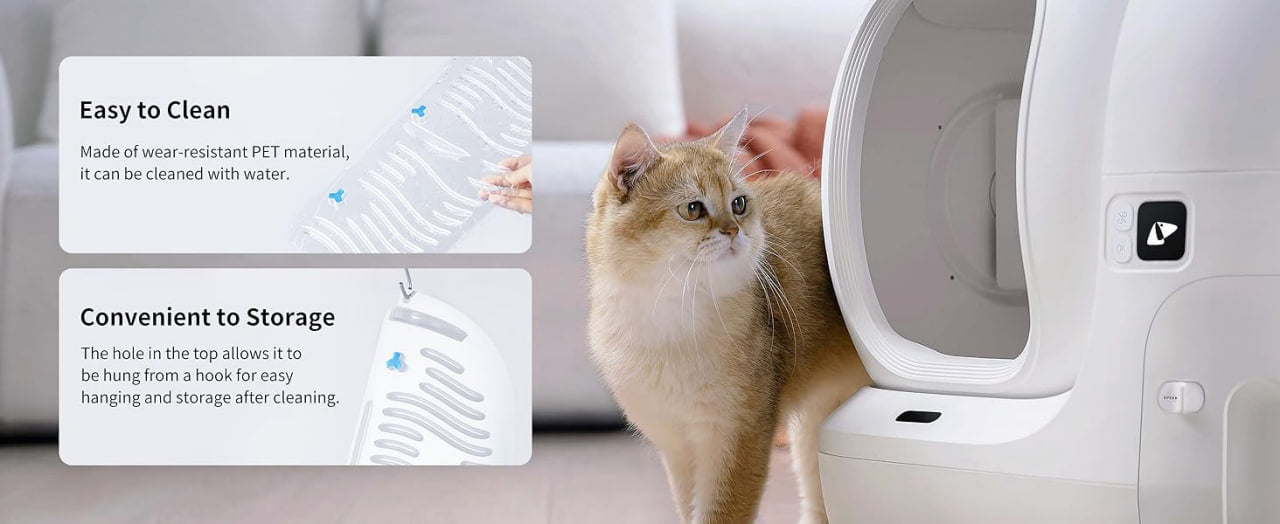 🎯Size : 41.7*16.85*2.85cm Adaptto the cat litter filter and quickly dump cat litter detachable ,easy to clean