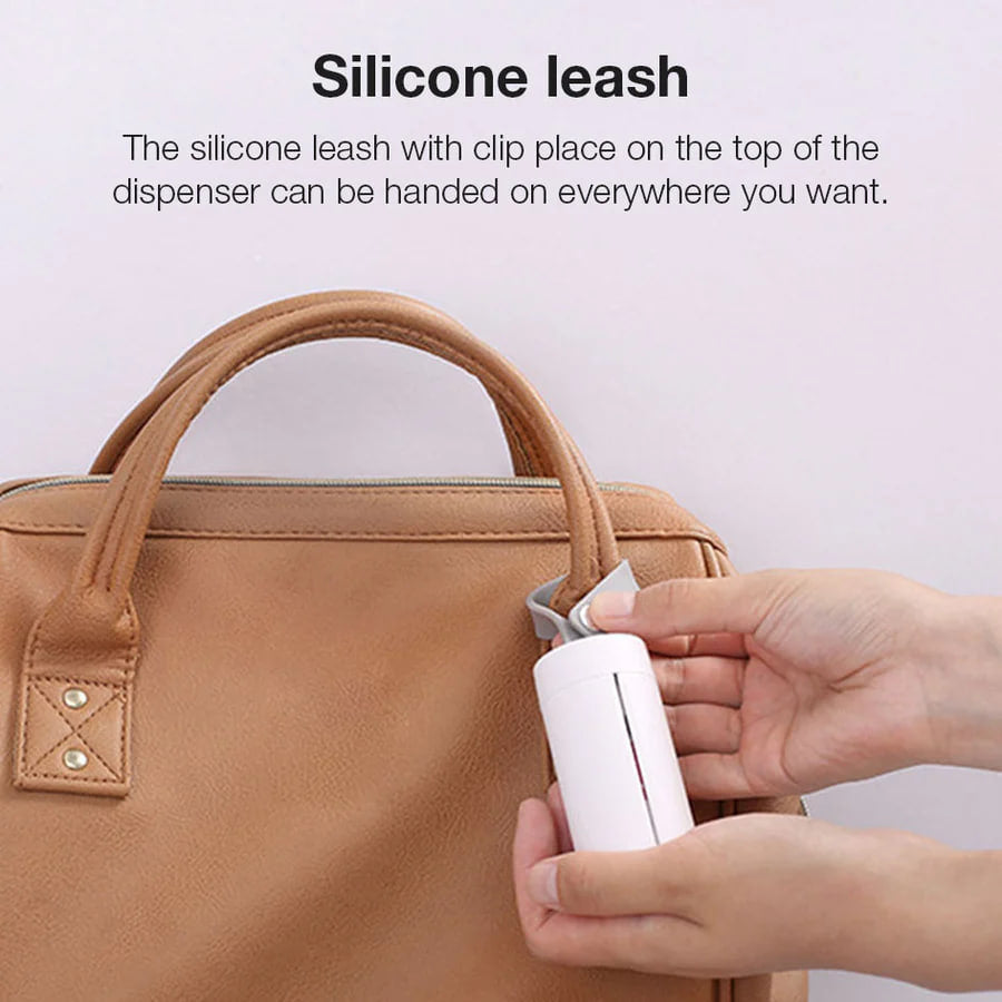 Secure the dispenser's ring-style harness clip for easy access and one less thing to hold or lose in your pocket while walking.