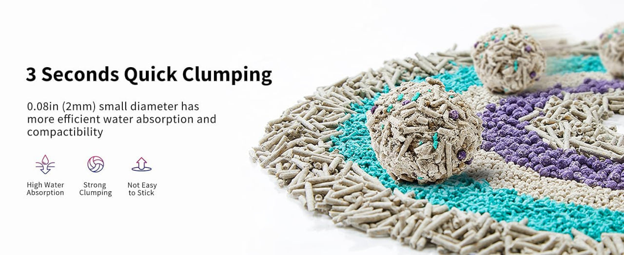 π― Rapid Clumping: Small-particle bentonite not only fills up the gap of tofu cat litter, but also increases the connection area, enhances water absorption of cat litter, contributing to quick and tight clumping. You don't need to scoop a sticky litter box.