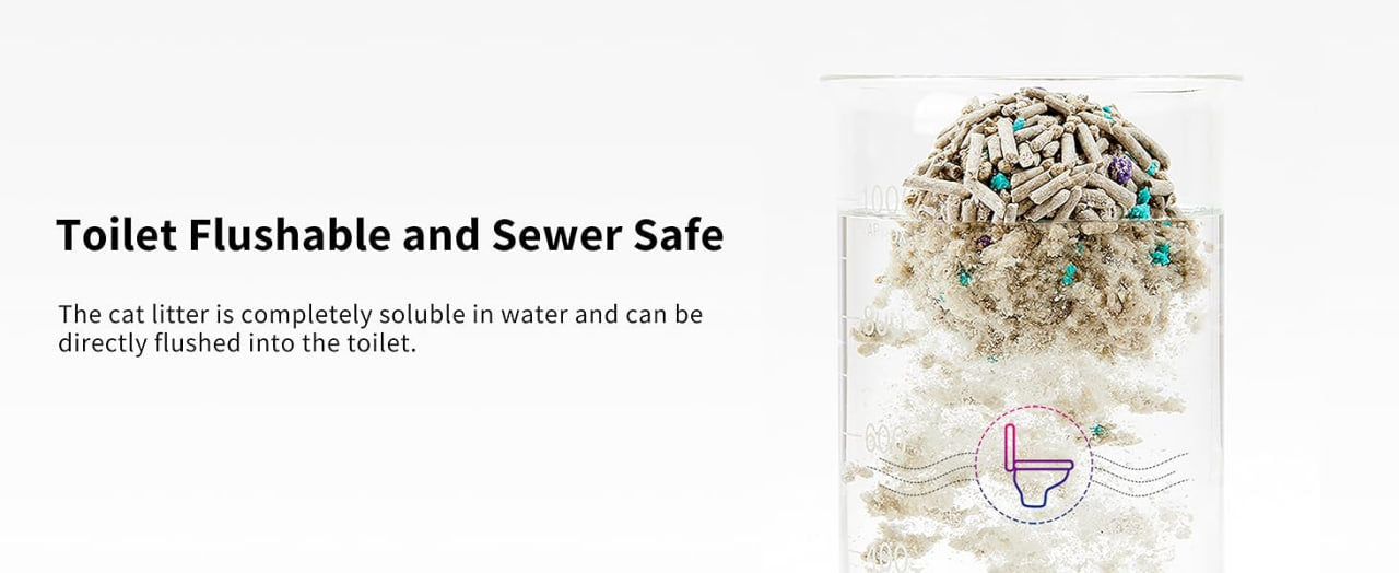 π― Water Flushable: Made of natural ingredients, water dissolvable and flushable, you can directly pour the used cat litter into the toilet(Note: Please don't pour too much one time).