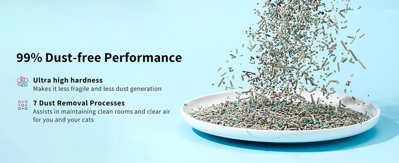 π― Dust-Free and Odor Control: Activated carbon and deodorant particles prevent unpleasant smell. 2mm diameter of each cat litter, high hardness and non-fragility cat litter decreases dust in the air to protect your cat's respiratory system.