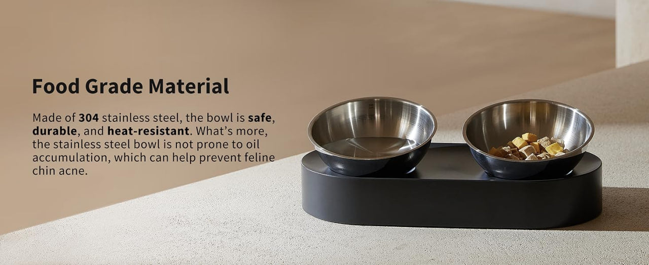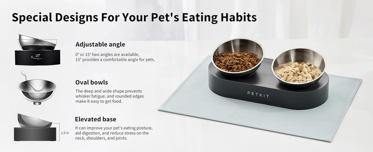 🎯 A raised bowl with a stand may help reduce discomfort for the animal: bringing your cat's feeding bowl to the right height will make it easier for your pet to eat A food bowl tilted at an angle of 0/15 inch can reduce the pressure on pets when feeding, avoiding spine and hip problems in the future
