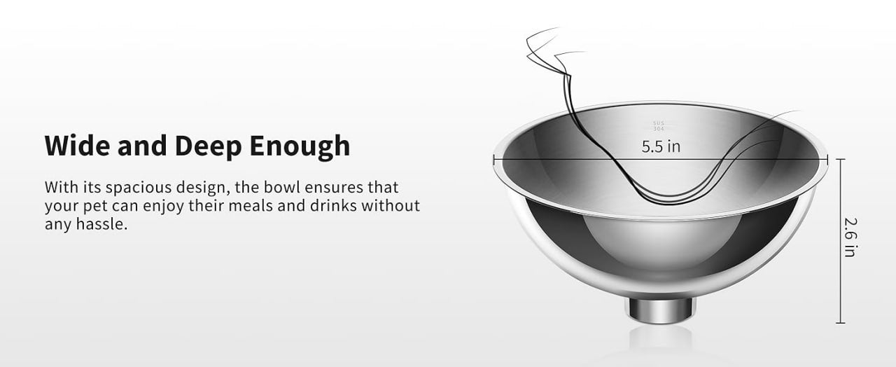🎯 Suitable for all cats, this cat feeding bowl is about 13.7 cm wide and 6 cm deep. The bowl comes with a wide opening which prevents pets from eating fatigue, while the rounded edges make it easy for cats and dogs to get all the food they need. Deep enough to hold cat and dog food without overflowing
