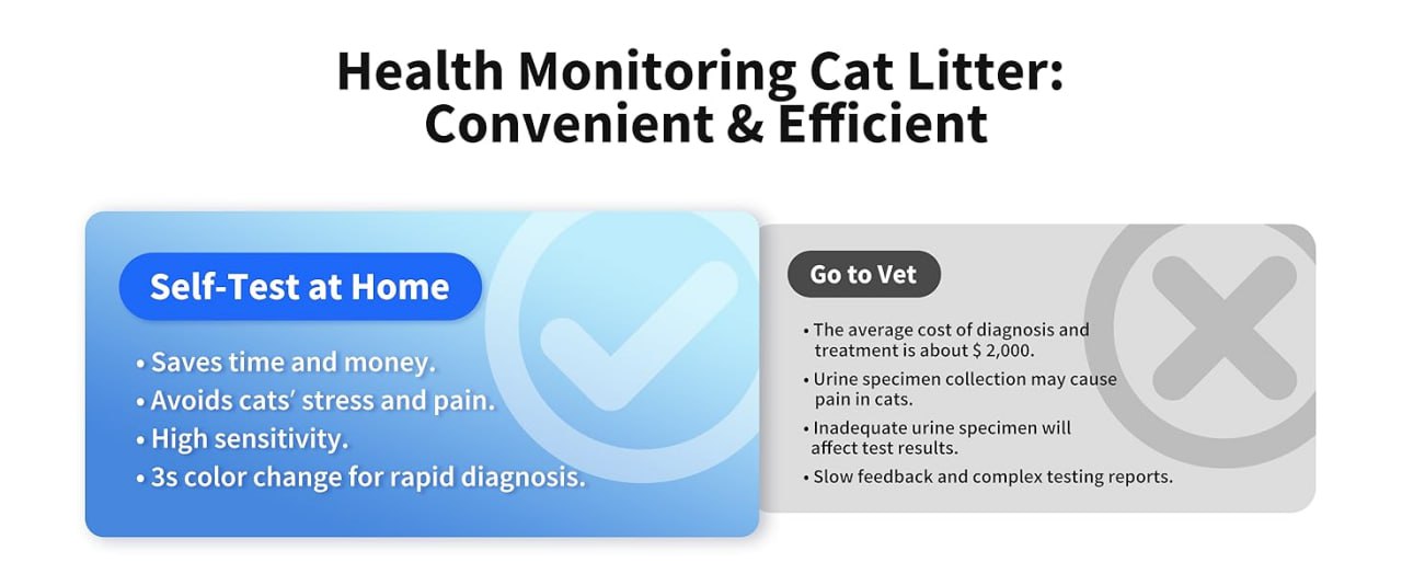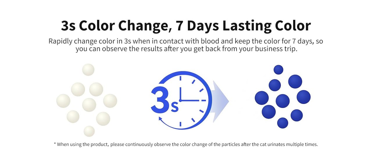 🎯 PETKIT 2024 new mixed cat litter, which changes colors to help monitor your cat’s urine to detect potential illness for your cats early. The test particles will change color in 3 seconds when exposing to colorless trace blood in cat's urine, and maintain the color for 7 days, which can remind you of your cat's health.