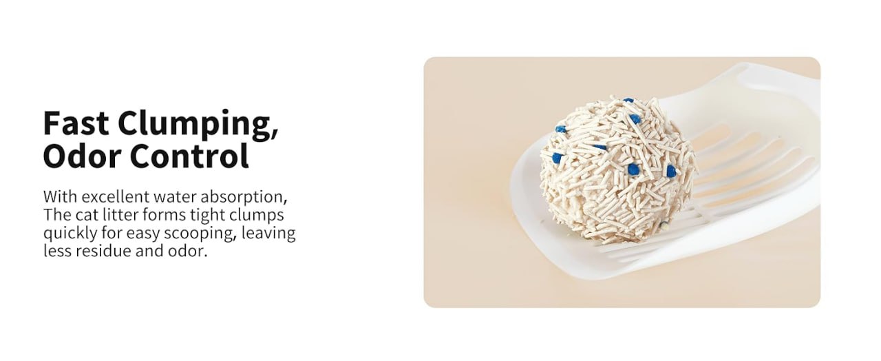 🎯Rapid Clumping: Small-particle bentonite not only fills up the gap of tofu cat litter, but also increases the connection area, enhances water absorption of cat litter, contributing to quick and tight clumping. You don't need to scoop a sticky litter box.