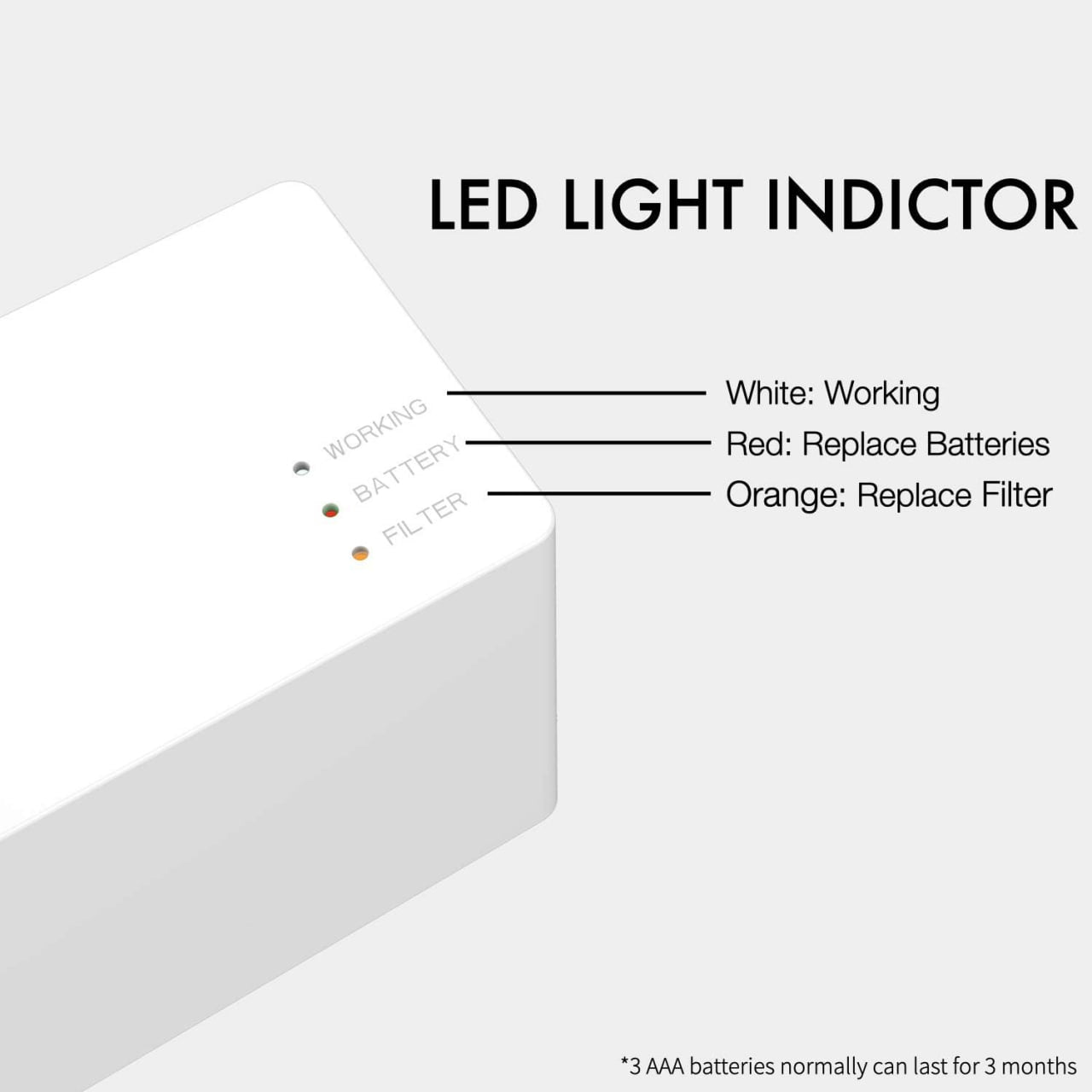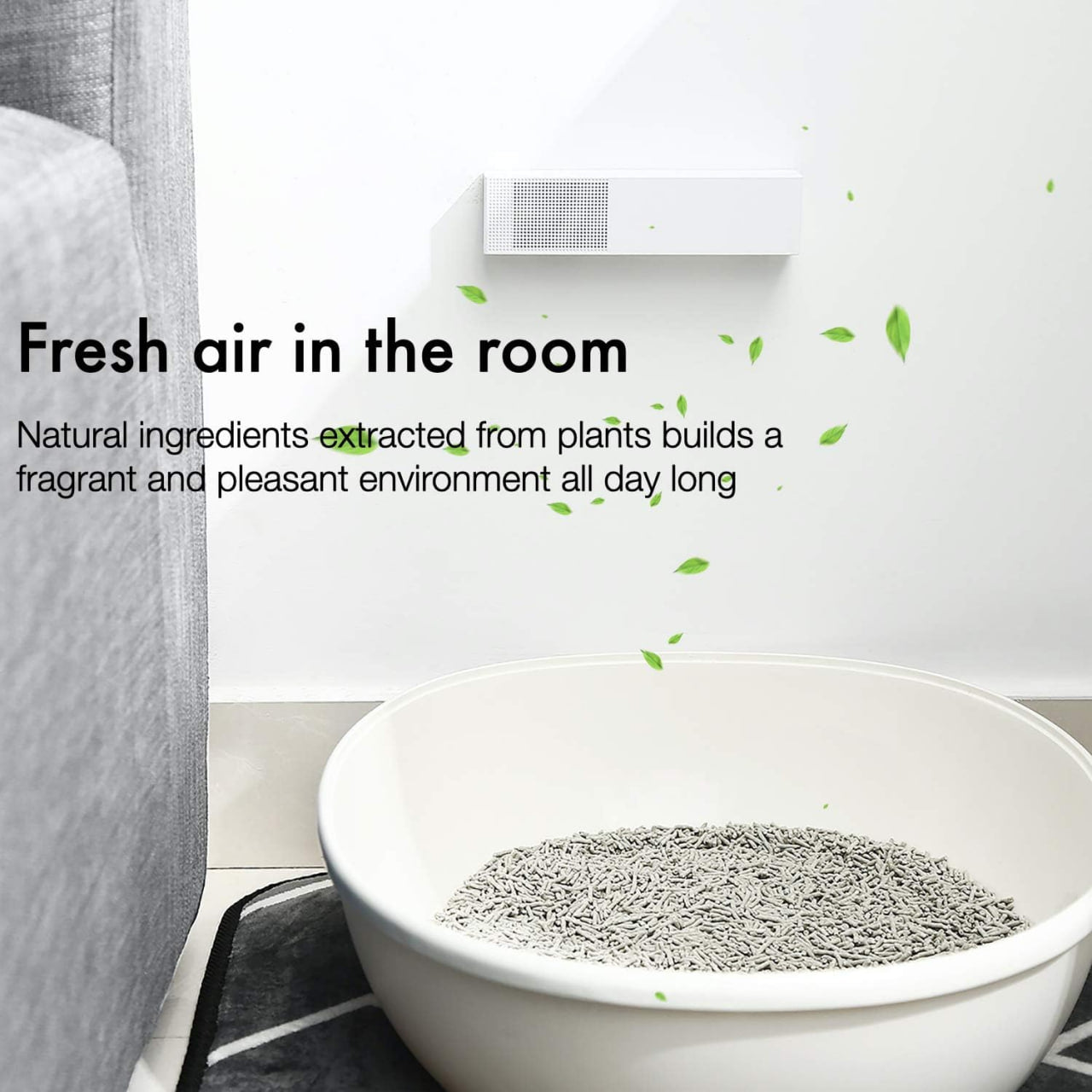 🎯 LED Light Indicator and Power Saving- Easy to check the working status of this pet litter and urine remover and when to replace the filter and batteries. It requires 3xAAA batteries (included in the box) to bring continuous and long-lasting fragrance into your room for at least 90 days.