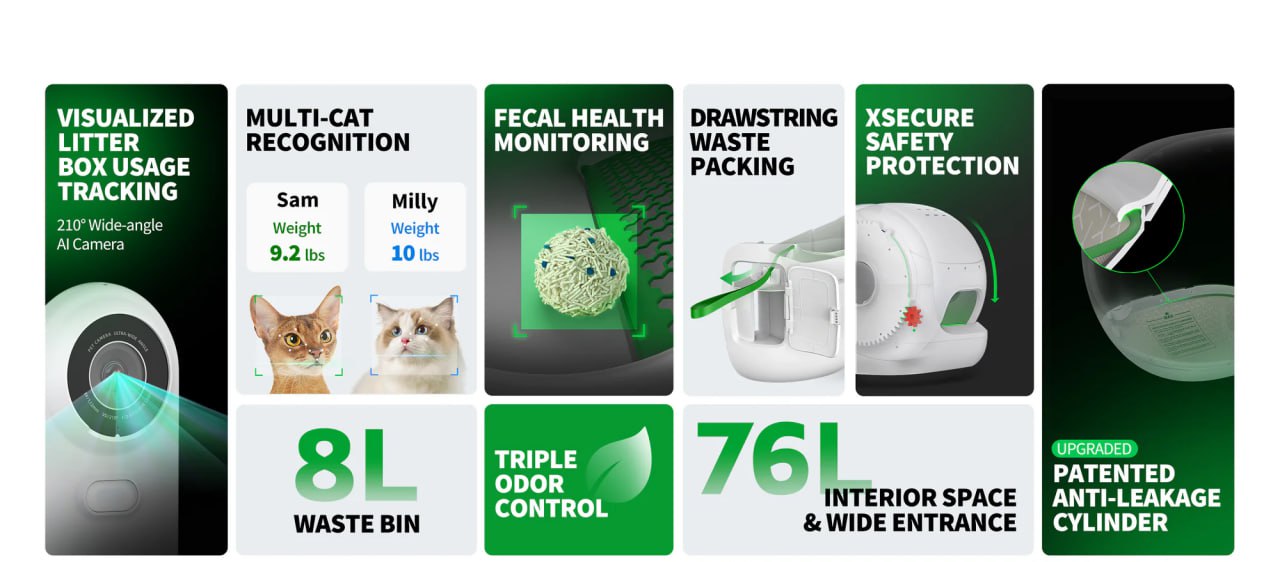 xSecure System Ensures Safety: With high precision sensors ensure the accurate operation and maximum safety. The cylinder stops working immediately upon pet proximity. Additional, the new PETKIT smart cat litter box is designed with anti-pinch structure to keeps the entrance open at all times, prevent cats from getting stuck.