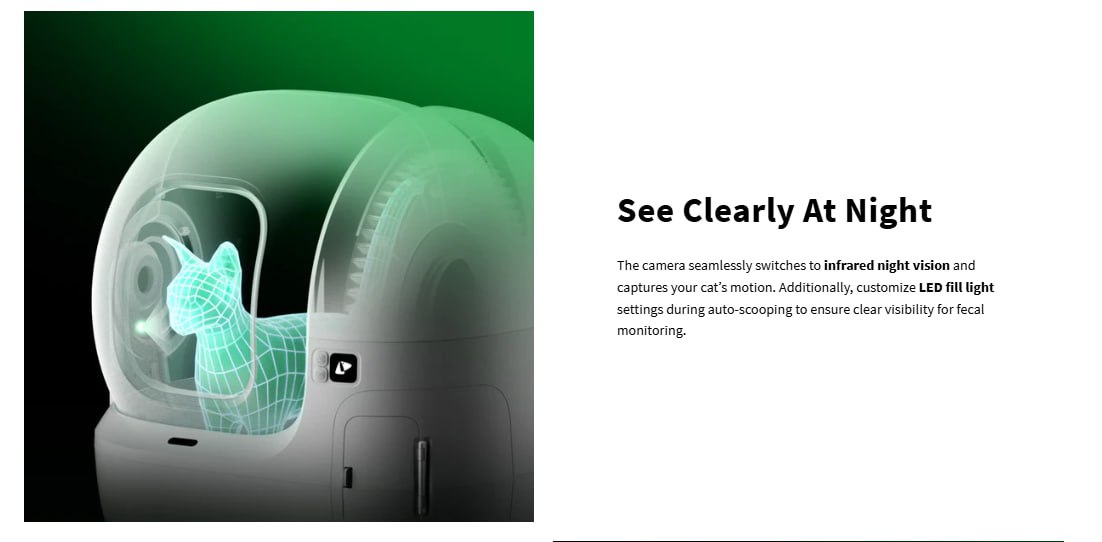 AI-Powered Camera: The PETKIT MAX PRO self-cleaning cat litter box features a high-resolution AI-powered camera with a 210° wide viewing angle and IR night vision, clearly capture the details of toileting, focuses on recording the data of cat's urine and poop balls to help cat owners judge their cat's health status and prevent it in advance.