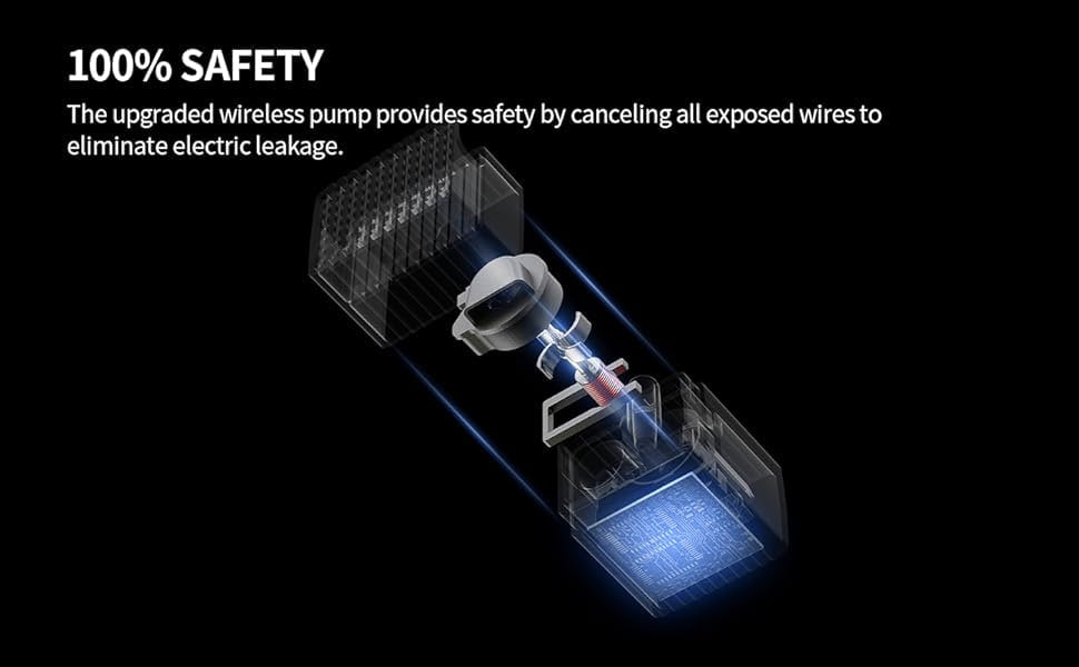 🎯 This wireless pump has no exposed lines in water, which makes it safer. Pump can be easily disassembled, which also reduces the hassle