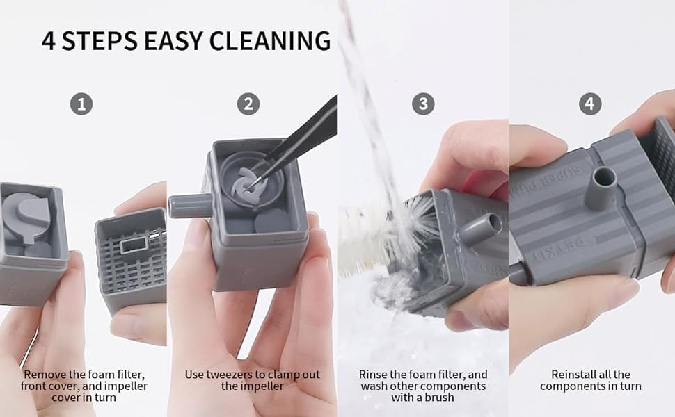 🎯 We recommend that you disassemble and clean the pump at least once every two weeks, that will make the water flow more smoothly.