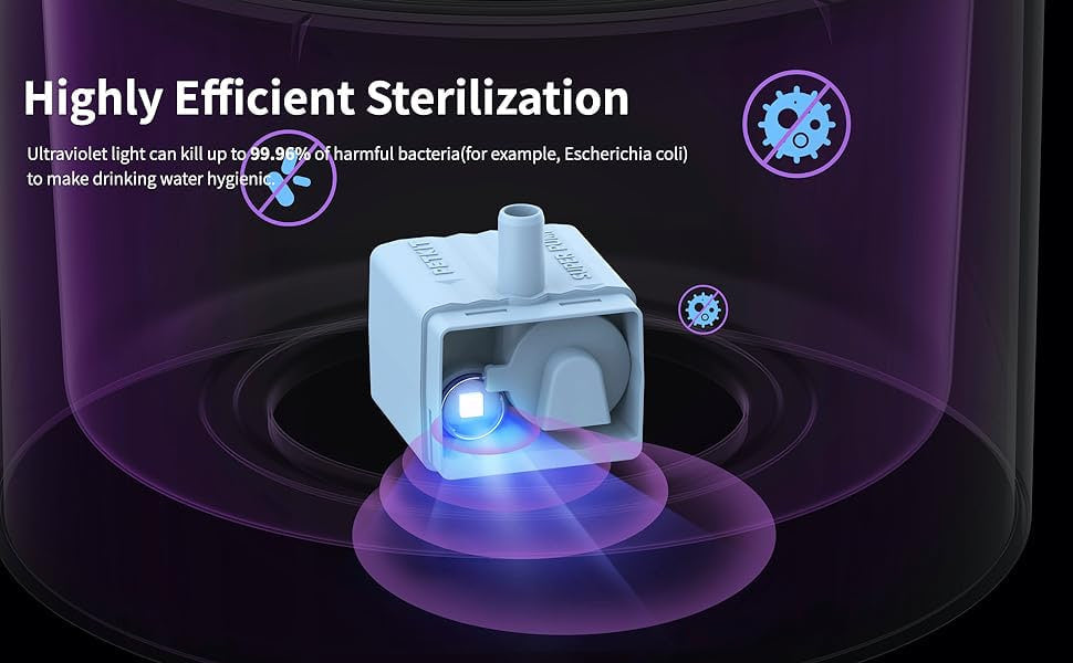 π― Short-wavelength ultraviolet light emitted by the pump can kill up to 99.96% of harmful bacteria, such as Escherichia coli, to purify and sanitize drinking water.